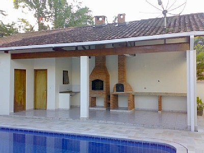 Aqui temos um exemplo de edícula bem simples e funcional, que pode ser utilizada de outras maneiras quando não há churrascos em casa.